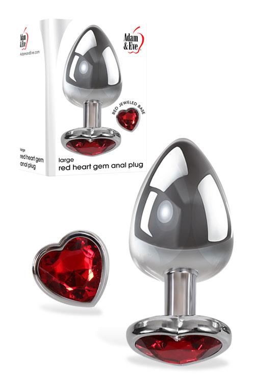 Elevate your intimate experiences with the Adam and Eve Large 3.73 Jewel Heart Base Metal Butt Plug, the perfect blend of elegance and pleasure. This stunning butt plug features a captivating red heart-shaped jewel at its base, making it not just a toy, but a statement piece for your collection.