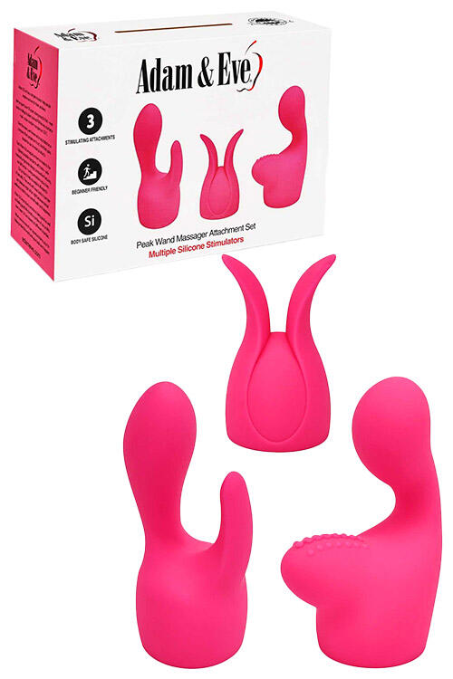 Elevate your pleasure experience with the Adam and Eve Peak Wand Vibrating Massager 3 Piece Attachment Set. Designed to transform your Peak Wand into a multi-functional pleasure tool, this attachment set is perfect for those seeking to explore new sensations and intensities. Each attachment is crafted to enhance the already powerful vibrations of your massager, allowing you to indulge in a variety of pleasurable experiences.