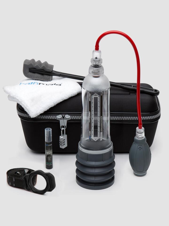 Pump it up with one of Bathmate’s most powerful penis pumps. Using the power of water, the HYDROXTREME9 pump creates a vacuum around your penis that can increase its length and girth. Includes 11 different accessories for optimum results. Designed for use in the bath or shower, the Bathmate HYDROXTREME9 penis pump uses water, rather than air, to create optimum safe pressure around your penis which can enhance your erection strength and penis size. Monitor your growth with ease thanks to the transparent finish and measuring gauge on the side of the pump. The included comfort pad and lubricant offer pure comfort during pumping – just one session a day involving up to 3 reps of 5-6 minutes can help to deliver impressive results. Please note: The HYDROXTREME9 is the same product as the original HYDROMAX XTREME X40. For best results, Bathmate recommends a maximum of 3 x 5-minute sessions, 5 days a week. If pumping regularly, we recommend moisturising after every use to avoid dryness. Results may vary.