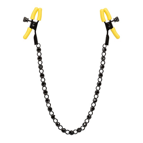 Unleash a new level of arousal with the Boundless Nipple Teasers. These fully adjustable nipple clamps feature stunning crystals and a sensual chain, allowing you to tailor your experience. Simply dial to intensify the sensation, making them perfect for teasing not just your nipples but any sensitive area of your body. Made from body-safe, nickel-free materials and equipped with soft silicone pads, they ensure comfort while amplifying pleasure.