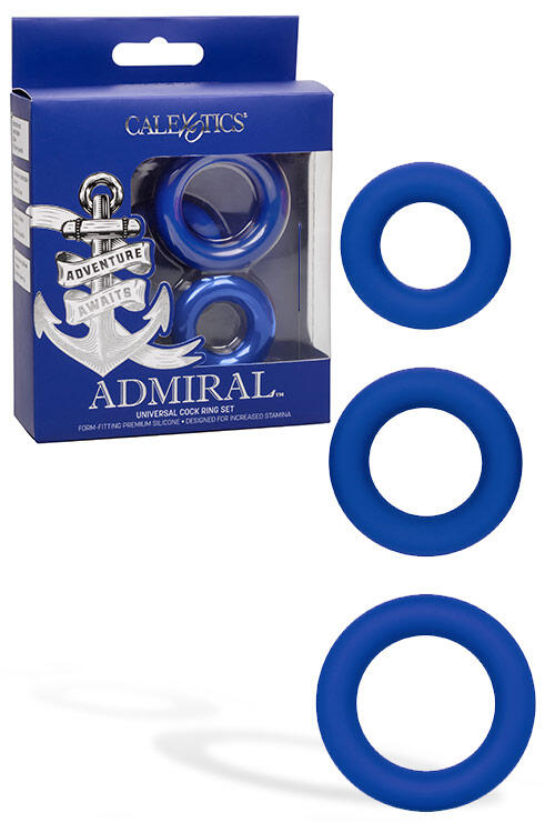 Embark on an exhilarating journey of pleasure with the Calexotics Admiral Universal Silicone Cock Ring Set. Designed for those who seek both comfort and performance, this set features three graduated rings that cater to your unique needs, ensuring a secure fit that enhances your intimate experiences.