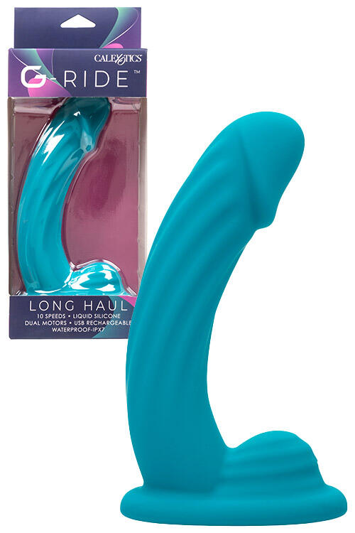 Get the mount you’ve been craving with the Long Haul from Calexotic’s G-Ride collection. Designed with a curved, semi-realistic shaft and tip, this textured G-Spot vibe rocks 10 different vibration speeds to satisfy your cravings, a textured grinder pad for external clitoral stimulation., and a longer 6.5″ insertable length to satisfy the thirstiest queen. Crafted from super soft liquid silicone, it is an exceptionally smooth ride, while the suction cup base attaches to any smooth, flat surface for hands-free pleasure. As an added bonus the entire thing is fully waterproof so you can take it into the shower, tub, or spa for some wet and wild pleasure.