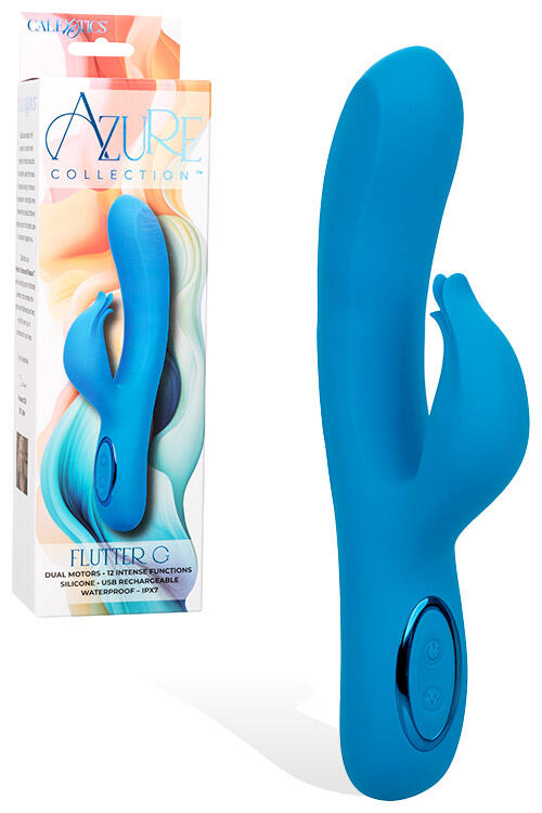 Indulge in an unforgettable experience with the Calexotics Flutter G 9 Silicone Rabbit Vibrator, a masterpiece from the Azure Collection designed to elevate your pleasure to new heights. This luxurious vibrator combines ergonomic design with powerful functionality, ensuring that every moment is filled with ecstasy.