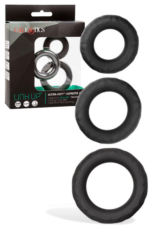Don’t miss out on the chance to elevate your intimate experiences. Order the Calexotics Link Up Supreme 3 Piece Cock Ring Set today and discover the ultimate in pleasure enhancement!