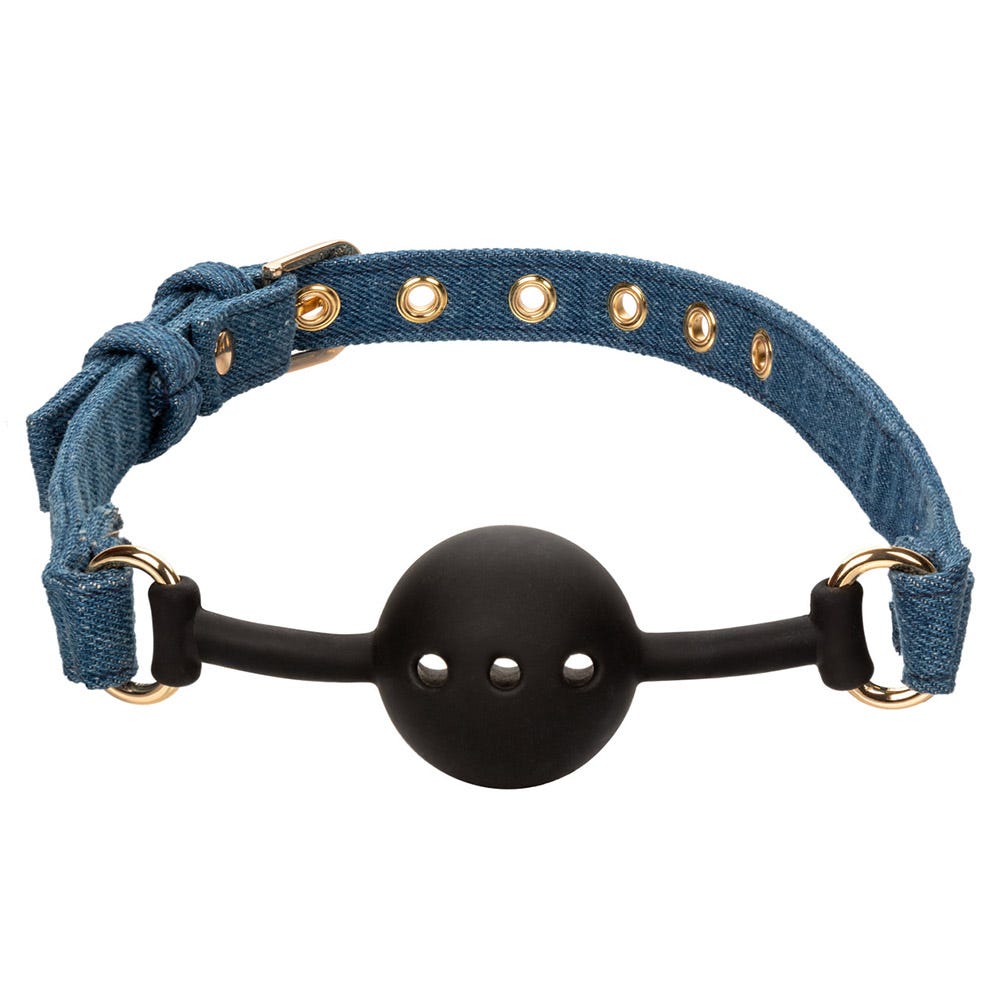 Unleash your wild side with the CalExotics Ride ‘Em Premium Denim Collection Ball Gag. This stylish ball gag is designed for those who crave both fashion and function in their intimate play. Made from body-safe materials, it ensures a comfortable and exhilarating experience for both beginners and seasoned BDSM enthusiasts alike.
