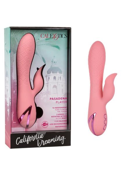Unleash your desires with the California Dreaming® Pasadena Player Rabbit Vibrator. This luxurious massager is expertly crafted for those who crave unparalleled pleasure. With 10 intense vibration functions, 3 shaft rotation speeds, and a unique tongue-like teaser, every moment becomes an indulgent journey of ecstasy.