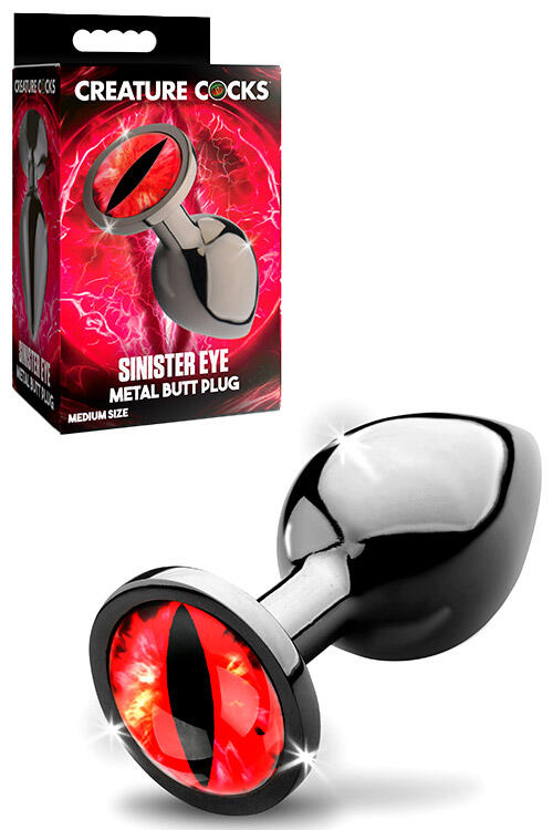 Step into another world of thrill with the Sinister Eye Metal Butt Plug, a portal to pleasure where a glowing red-eyed creature peeks out from the black hole of your booty.