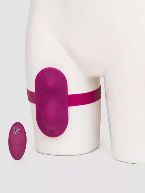 Embark on an exhilarating ride with the Dual Rider Remote Control Grinder, designed to elevate your intimate moments, whether indulging solo or with a partner. This remote control massager comes with a thigh strap that ensures both stability and pleasure, perfect for a hands-free experience that leaves you trembling with joy. Its sturdy yet lightweight design makes it ideal for those who love a good grind, letting you lose yourself in the rhythm of desire. Tailored for comfort and intensity, the fully adjustable and removable thigh strap adjusts up to 25 inches, ensuring a snug and secure fit for all body types. The massager is crafted from silicone and waterproof with an IPX7 submersible rating, perfect for adventurous play in any setting. The sensually textured, anatomically contoured surface targets your most sensitive areas, enhancing your pleasure with every touch. Dive deep into ecstasy with 12 functions of vibration, pulsation, and escalation, each setting designed to tease and please, pushing you closer to the edge with every pulse. Use the massager with or without the remote, which features an extended range of 10 metres, as you explore new heights of orgasmic potential. The Dual Rider is as convenient as it is thrilling. It comes with a dual charging cord for the massager and remote, achieving a full charge in just 1. 5 hours. Enjoy up to 90 minutes of play on low speed or 50 minutes on high. It also includes a state-of-the-art memory chip that cleverly resumes on the last function used, and a security of a travel lock feature for worry-free transport. For the best experience, use with plenty of water-based lubricant.