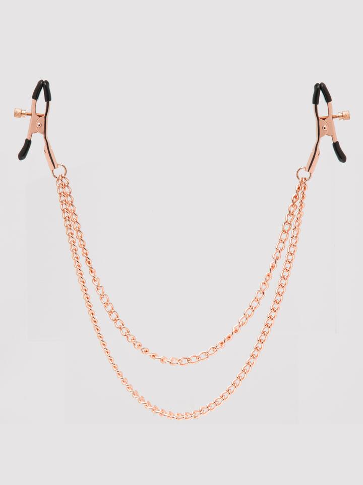 Explore sensory play with a set of stunning adjustable nipple clamps to enhance nipple sensitivity. Suitable for beginners and advanced players alike, these nickel-free clamps are fully adjustable and boast beautiful tiered metal chains for added weight. Unique in their design, the metalwork on these clamps is finished with a rose coloured tint which it not only eye-catching, but extremely complimentary on any complexion. Adjust the crocodile style clips using the screw pin feature to experience the perfect level of pinch for you. During wear you’ll enjoy gentle throbbing as blood flows to your nerve-endings making your nipples ultra-responsive and erect. Remove them and experiment with fingers, vibrators and your lovers tongue to take full advantage of their new sensitivity.
