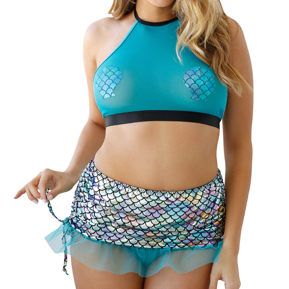 Unleash your inner mermaid with the mesmerizing Fantasy Lingerie Play Beach Please Costume! This enchanting outfit is designed to make waves and transform your fantasies into reality. Featuring stunning holographic scales and a delicate tulle trim, this costume is perfect for playful beach adventures or themed parties.