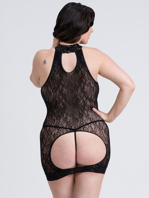 The keyhole neckline draws the eye to your cleavage, while the daring open rear invites playful strokes and tantalizing spanks. Crafted from delicate floral lace, this dress reveals just enough skin to tease, showcasing your figure in the most alluring way. The enticing cut-out at the back is designed to put spanking right at the top of your to-do list, ensuring a night filled with passion and excitement.