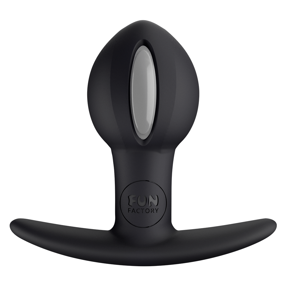 This butt plug is anything but a lazy bottom! Anytime you move, the weighted ball inside the B BALL UNO bounces, rolls, and rumbles in response! Get more from the motions of partner sex, with a plug that gives you powerful feedback with every thrust. Wear it during vaginal sex for an extra feeling of fullness: its round shape will angle your partner (or favorite dildo!) into your G-spot and maybe even let your partner in on the B BALL UNO’s unique sensation! Feeling like you’d rather lie back and enjoy? Press a powerful vibrator against the B BALL UNO’s base, and feel the balls inside respond! Plus, the B BALL UNO is great for adding extra spice to a spanking or just for a silent, secret thrill while you go about your day. Its tapered tip helps you slide it right in, and the flexible silicone base fits snugly between your cheeks and moves with your body, making the B BALL UNO the most versatile plug in your arsenal.