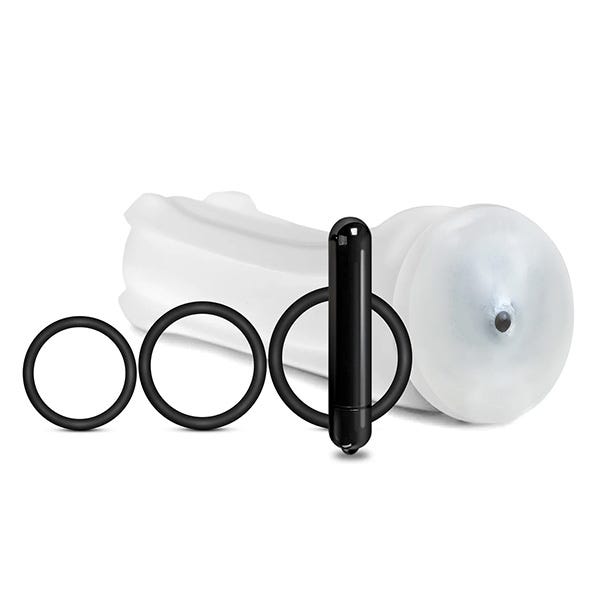 Features: Textured tunnel, vibrating bullet, three cock rings