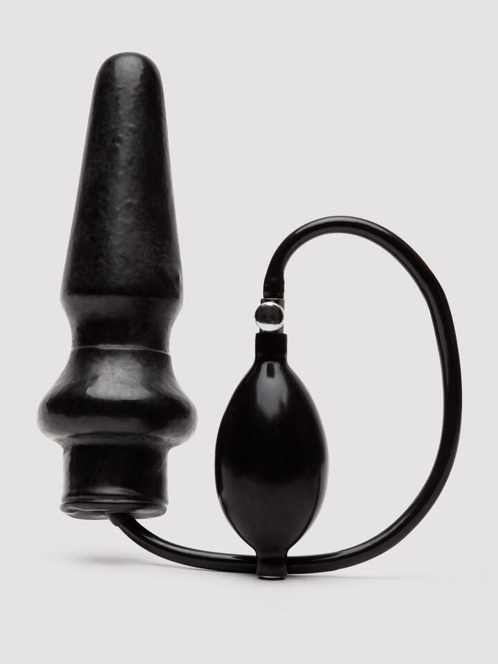 Expand your horizons with this inflatable, black latex, butt plug. Offering a length of approximately 7.8 inches and a circumference that fits between 2.8-6.4 inches, use the hand pump and outlet valve to increase or decrease the size in stages to suit you. For comfortable insertion, ease your plug in uninflated, then give the palm-sized air bulb a quick squeeze to send your sensitive anal nerve-endings into a frenzy. For optimum pleasure, use your toy with a generous amount of water-based anal lubricant.