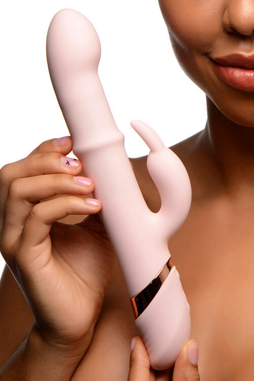 With 10 sliding modes and 10 vibration functions, the Bunny Slide offers a customizable experience tailored to your desires. The seamless, silky-smooth surface is crafted from premium silicone, ensuring it feels exquisite against your skin. The dual stimulation design targets both your G-spot and clitoris simultaneously, with the playful bunny ears providing tantalizing external teasing.