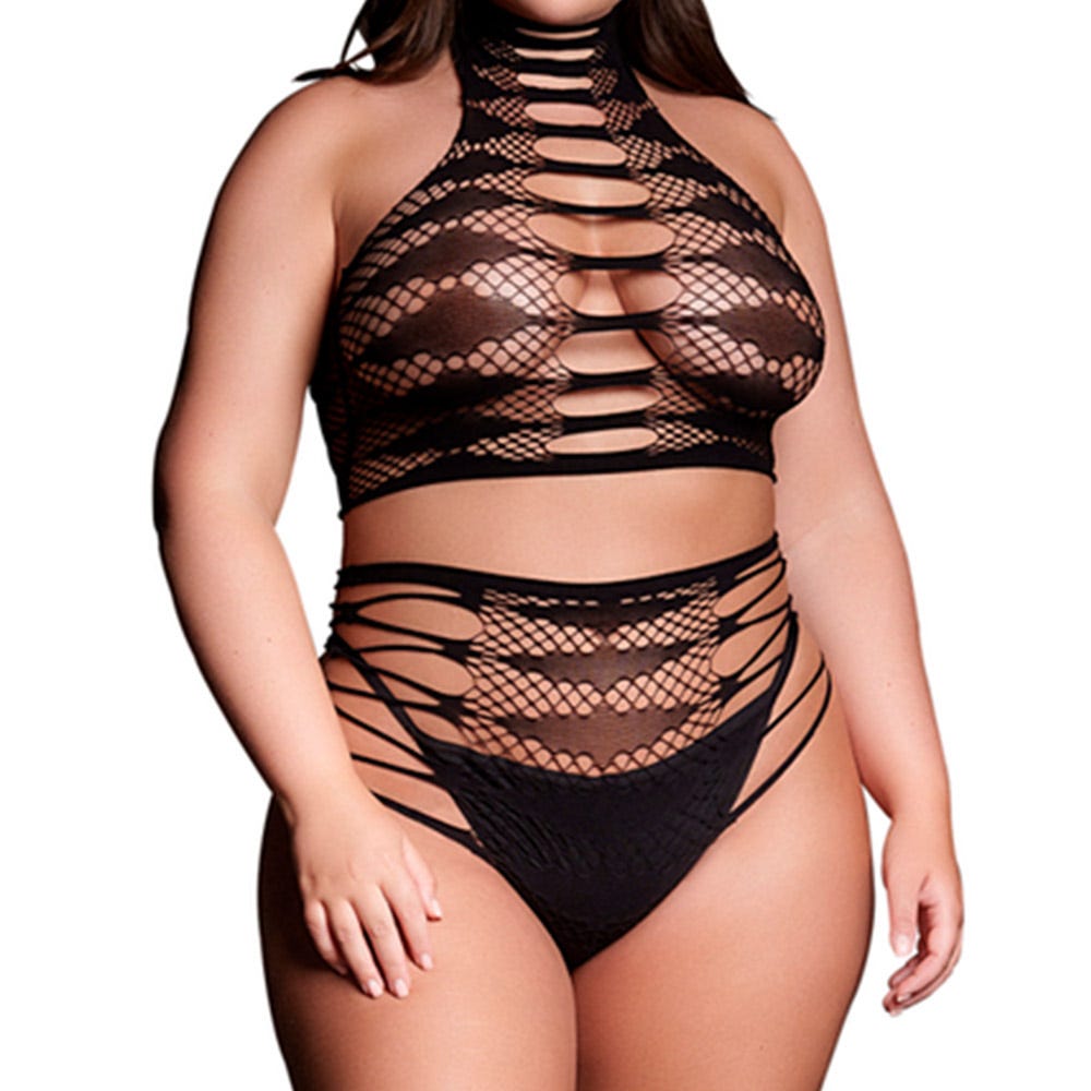 Introducing the Le Desir Carpo Turtleneck Crop Top and Panty set, a daring mix of seduction and style. In stunning bad girl black, this set features a turtleneck crop top that playfully reveals your skin with its strappy design, while the matching panties continue the enticing theme. Made from premium, body-hugging fabric, it stretches perfectly to accentuate your unique curves. Admire your reflection and feel the anticipation build—tonight, you’re the star of your own show!