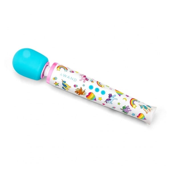 Clean your Le Wand Unicorn Wand with warm water and mild soap before and after each use. Store it in the provided drawstring pouch, away from direct sunlight. Use only water-based lubricants for the best experience.