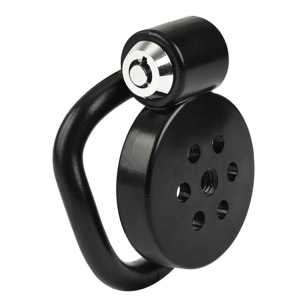The set includes five interchangeable rings in progressively larger sizes, ranging from 38 mm to 52 mm, allowing for a more tailored fit. A tubular cam-style lock secures the device in place, and the lightweight ABS polymer construction keeps it comfortable while worn.