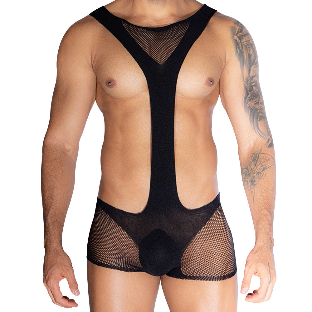 Unleash your inner seductress with the Love In Leather One Piece Body Stocking. This exquisite piece envelops your body in a soft, body-conforming fit, accentuating your curves while showcasing a bold and dramatic design. The striking black fabric features an extreme plunge neckline, designed to tease and allure, making you feel confident, seductive, and powerful in every moment.