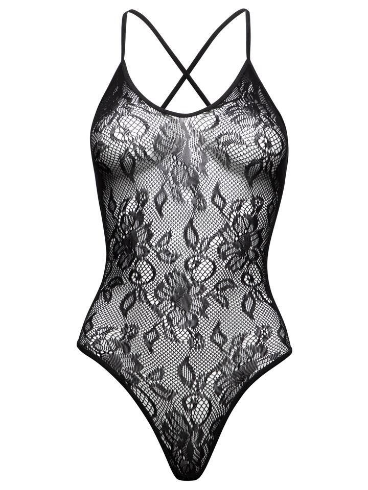Lovehoney Black Crotchless Lace Spaghetti Strap Body – One size – Black