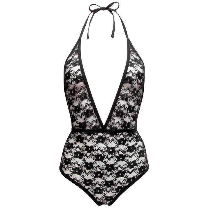 Lovehoney Crotchless Deep Plunge Black Lace Body – One size – Black