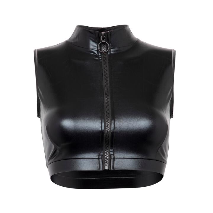 Lovehoney Fierce Black Wet Look Zip-Up Crop Top – Small – Black
