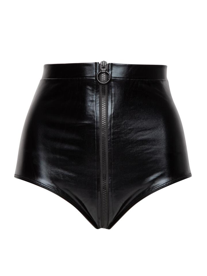 Whet your appetite for fetish glamour in these undeniably erotic high-waisted knickers from our Fierce collection. Cut high on your butt, they show off every inch of your legs. Use the zip to reveal even more, or to expose your most intimate areas. The thick waistband hits your body just below your midriff, highlighting your waist – why not pair your knickers with a crop top or bra to show off an inviting slice of skin? Made from stretchy, light-reflecting fabric, these figure-hugging knickers emulate the sheen of black leather, giving you an effortless fetish-style look. The high-shine material accentuates your butt and hips, making the most of every beautiful contour. Model is an 8F, 5’6” and an AU dress size 8. She is wearing a size Small. Main Fabric: 92% Polyester, 8% Elastane Main Fabric Coating: 100% Polyurethane Excluding trims Own your sexuality, explore and express your sexual desire, and create the sex life you want in Fierce by Lovehoney.