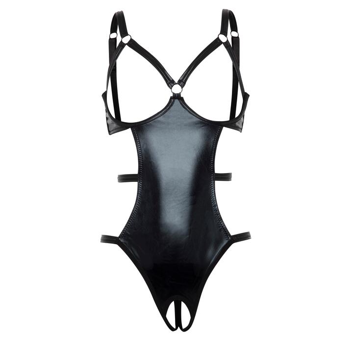Lovehoney Fierce Wet Look Open Cup Body – One size – Black
