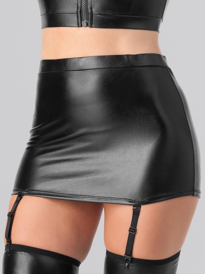 Lovehoney Fierce Wet Look Suspender Skirt t – Medium – Black