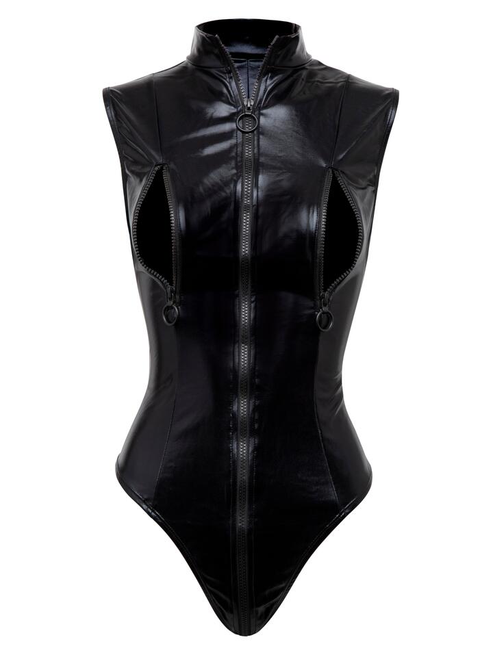 Lovehoney Fierce Wet Look Zip-Around Peek-a-Boo Body – Medium – Black