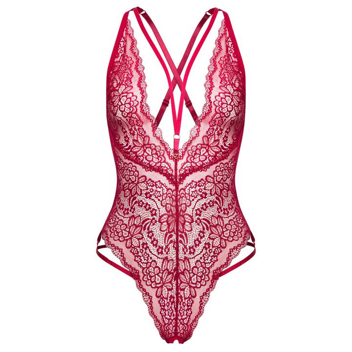 Lovehoney Late Night Liaison Wine Crotchless Lace Body – One size – Red