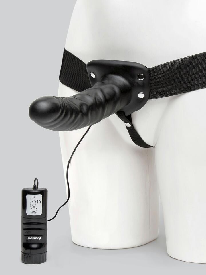 Lovehoney Perfect Partner Unisex Hollow Vibrating Strap-On 8 Inch – Black