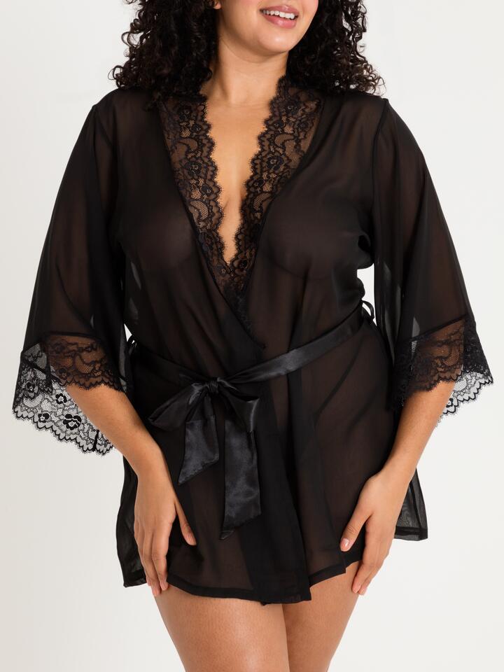 Lovehoney Plus Size Barely There Sheer Black Robe – One Size Queen – Black