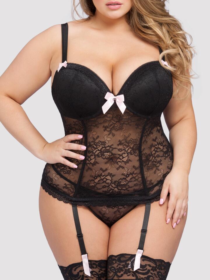 Lovehoney Plus Size Black Lace Push-Up Basque Set – 3X / 4X – Black