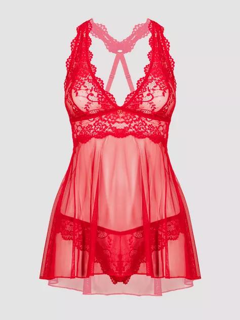 Ignite passion and confidence with the Lovehoney Plus Size Bombshell Red Lace Babydoll Set. This exquisite ensemble is designed to celebrate your curves while ensuring you feel irresistibly sexy. Crafted from a stunning blend of red lace and sheer mesh, this babydoll is the ultimate choice for those special nights when you want to leave a lasting impression.