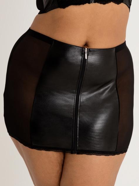 Lovehoney Plus Size Fierce Wet Look and Lace Zip-Up Skirt