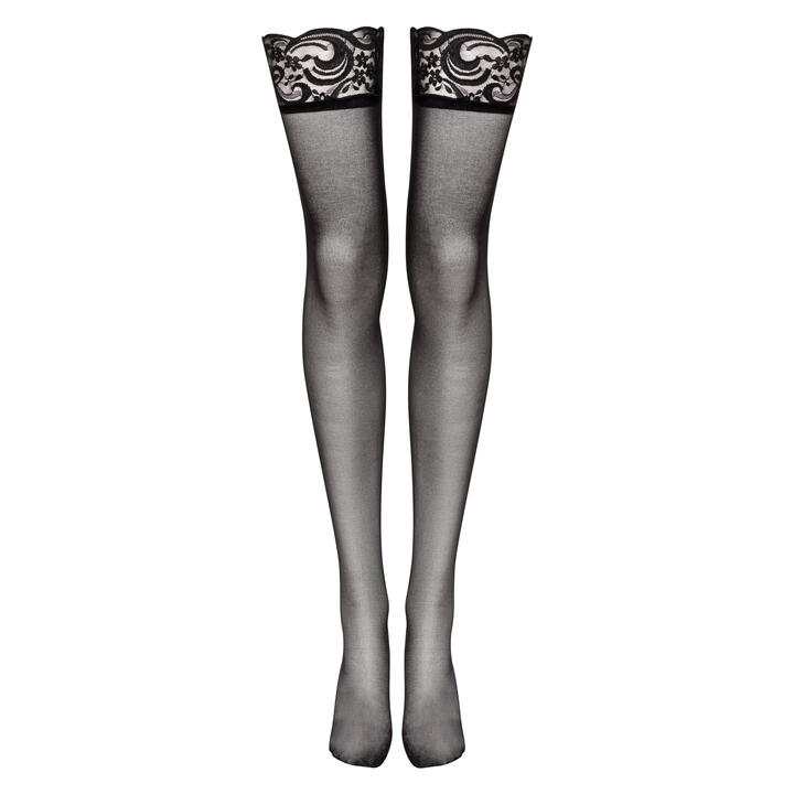 Lovehoney Sheer Black Lace Top Thigh-High Stockings - One size - Black