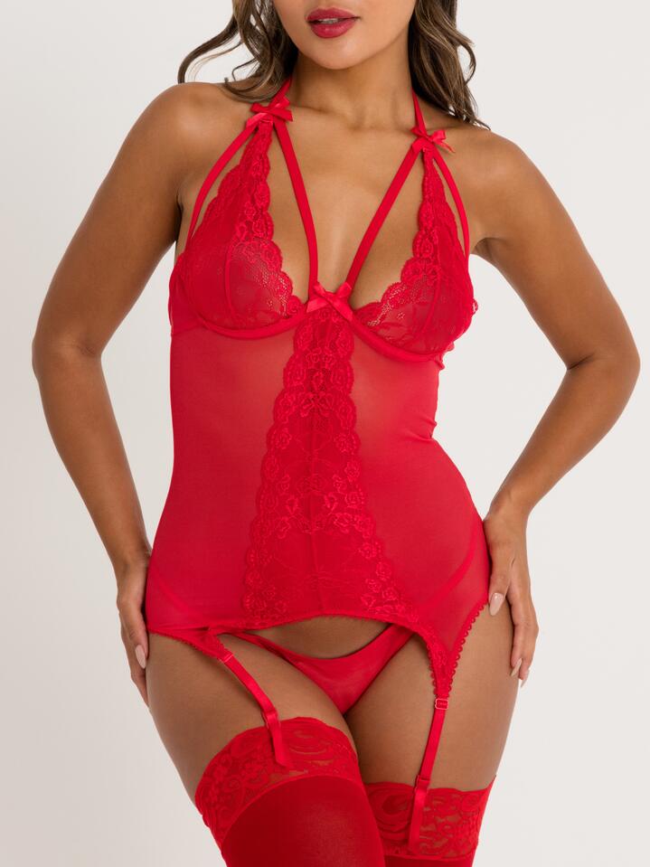 Lovehoney Wild Romance Red Basque Set – One size – Red