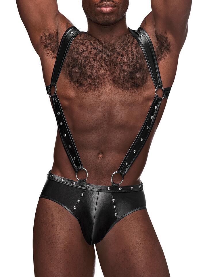 Male Power Black Studded Wet Look Harness Jockstrap – S / M – Black