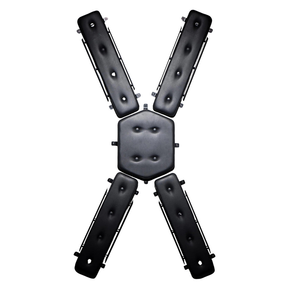 Elevate your intimate play with the Master Series St Andrews Cross, a sophisticated wall-mounted piece that brings the allure of a dungeon to your home without compromising on space. This innovative design features five adjustable components that cater to all body types, ensuring comfort with plush PVC leather padding throughout your most adventurous moments. With multiple attachment points, the creative possibilities are endless, allowing you to explore new dimensions of pleasure. When the excitement fades, this robust wood and iron structure seamlessly blends into your decor, waiting discreetly for your next passionate encounter.