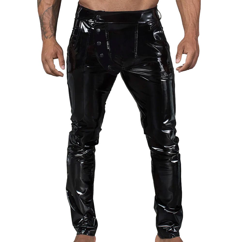 Transform your wardrobe with the Noir Elastic Mens Pants, designed for those who dare to make a statement. Crafted from high-quality elastic PVC, these pants provide a snug yet comfortable fit that molds to your body. The chic black snap fastenings at the front add a unique flair, while the imitation pockets with vinyl zippers at the back blend function with fashion seamlessly. Perfect for any occasion where you want to stand out!