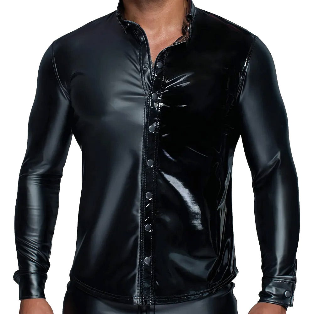 Step into a realm of sophisticated allure with our Noir Long Sleeve Button Shirt. This unique piece combines the daring shine of wet look material with the boldness of PVC, creating a statement that is both captivating and elegant. Tailored for a perfect fit, it features a classic collar and a stylish front adorned with press studs, adding a subtle touch of luxury. Whether you’re dressing up for a night out or looking to impress at home, this shirt adapts to your needs easily, thanks to its snap cuffs that allow for effortless sleeve rolling.