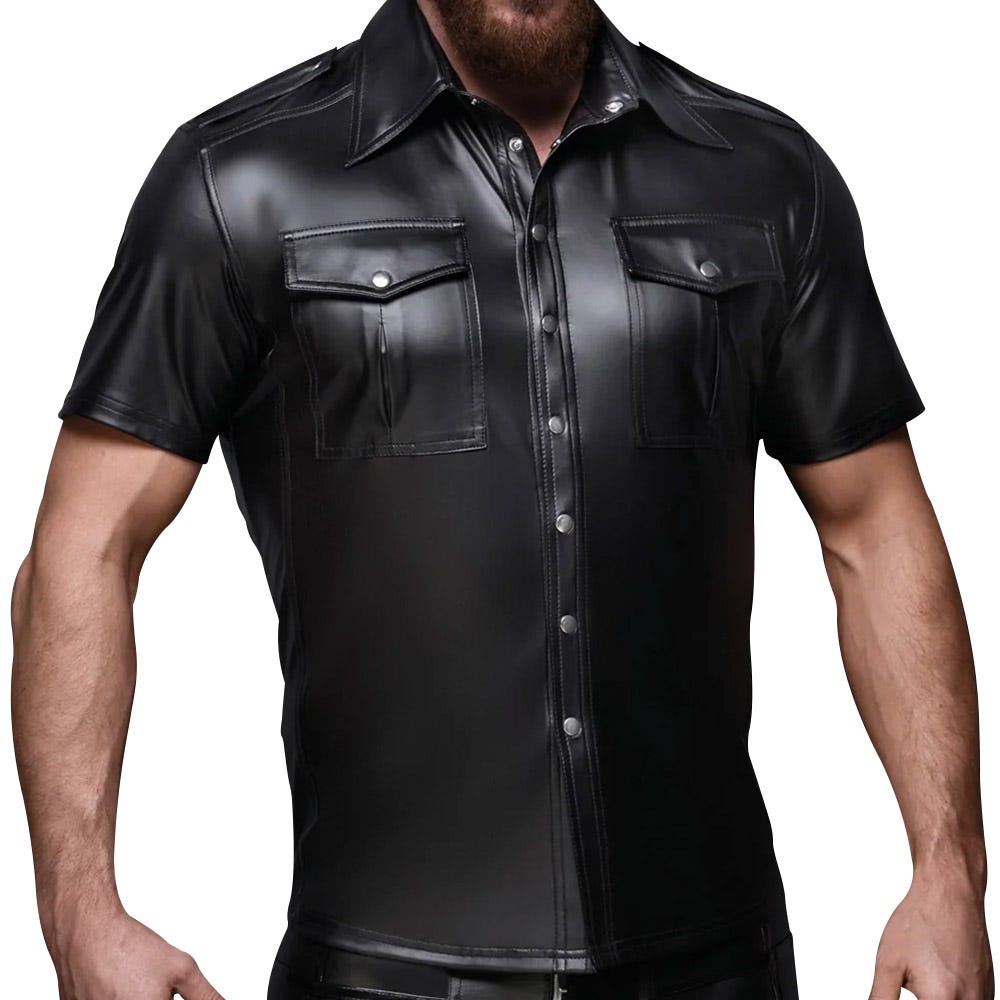 Step into sophistication with the Noir Men’s Shirt Front Pockets. This stunning wet look shirt features a sharp collar and dual chest pockets, perfectly merging elegance with a hint of edge. Crafted from a luxuriously soft material, it drapes comfortably against your skin, making it an essential piece for any wardrobe. Whether you’re dressing up for a special event or setting the mood for a sultry evening, this shirt is designed to captivate.