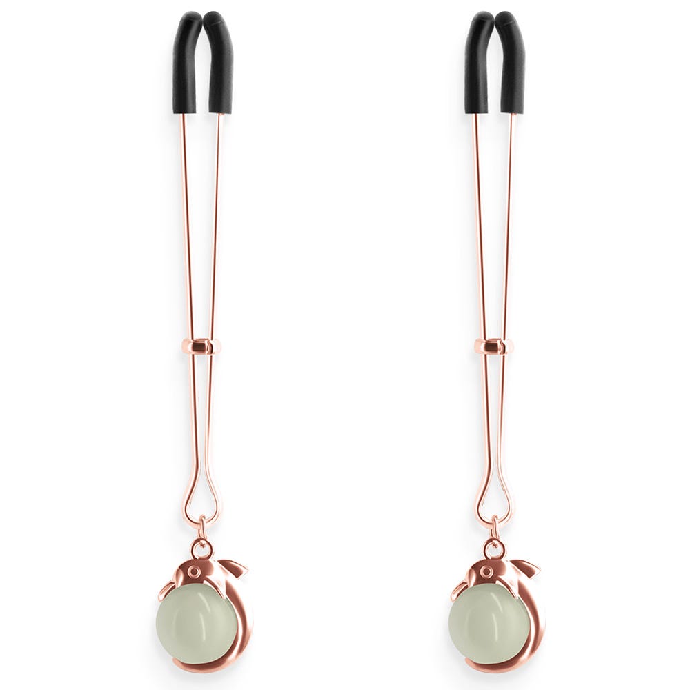 Delve into a world of tantalizing pleasure with the NS Novelties Bound G1 Tweezer Nipple Clamps. These delightful clamps feature adjustable tension and soft silicone tips, allowing you to customize your experience to achieve just the right pinch. Adorned with a captivating dolphin pendant and a glowing captive bead, they not only enhance your intimate moments but also add a touch of playful elegance. Lightweight and discreet at 12cm, these clamps are perfect for intimate accessorizing or wearing under your outfit, allowing you to elevate your pleasure wherever you go.