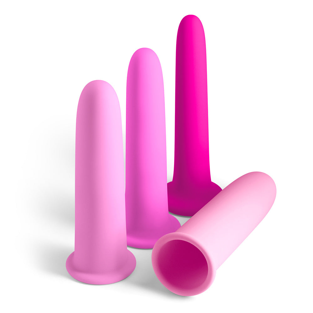 The INYA Gliders four-piece set helps you explore comfort and confidence at your own pace. Start with a small base and add the three smooth, stackable sleeves to gently adjust thickness as you progress. Made from body-safe silicone and safe to use with water-based lubricants.