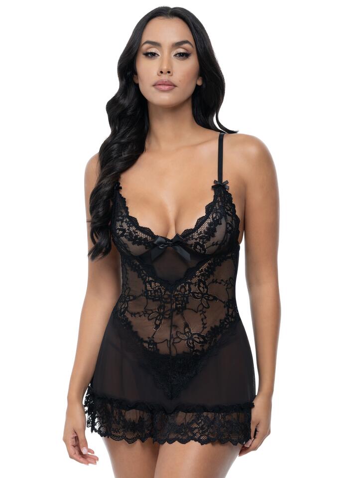 Oh La La Cheri Black Lace Babydoll Set – Medium – Black