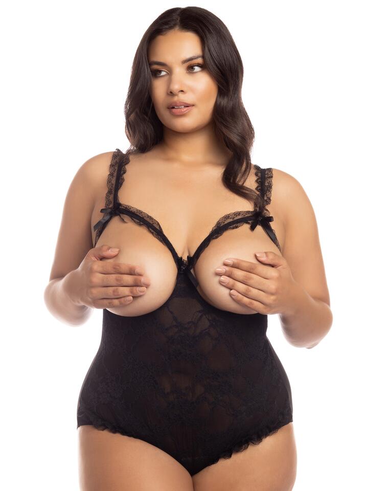 Oh La La Cheri Plus Size Open Cup Crotchless Lace Teddy – One Size Queen – Black
