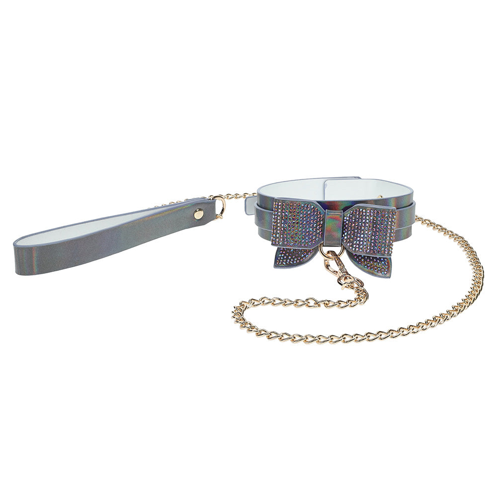 Unleash your inner royalty with the Ouch! Paris Collection Collar & Leash. This stunning PU leather set, adorned with iridescent hardware, is perfect for those who wish to blend sophistication with playful mischief. Transform your space into a realm of elegance and indulgence. Whether you’re a seasoned adventurer or a curious novice, this set promises to make every moment memorable.