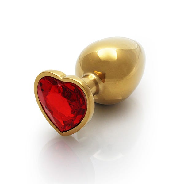 Elevate your intimate explorations with the Ouch Red Heart Gem Metal Gold Plug Large. This exquisite butt plug is not only a pleasure tool, but also a dazzling decoration that will mesmerize your partner. Designed for comfort and ease of use, its tapered tip and flared base ensure safe and pleasurable insertion, while the cool metal design offers a unique experience of temperature play. Let this gem ignite your passion!
