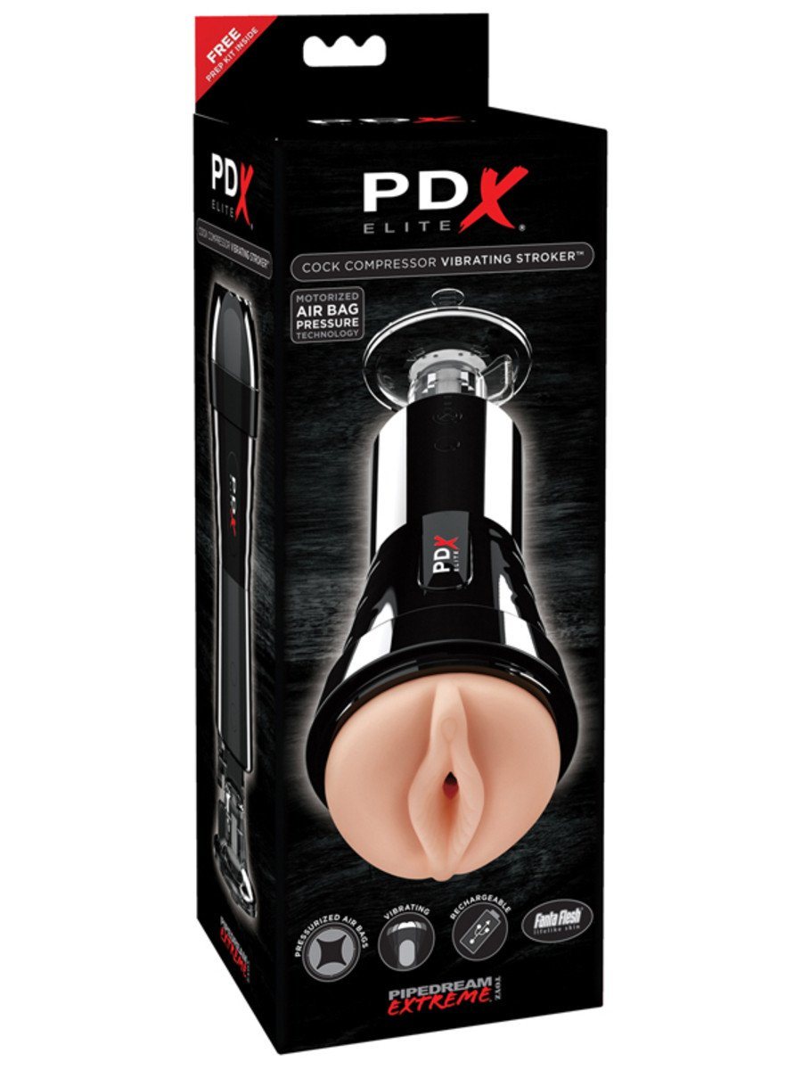 Elevate your solo sessions with the PDX Elite Cock Compressor Vibrating Stroker, featuring cutting-edge airbag technology that inflates and deflates for a tantalizing squeeze and release experience. The powerful air-tight suction combined with a lifelike Fanta Flesh interior sleeve will leave you breathless. With 10 patterns of vibration and an adjustable locking suction cup, this stroker is designed for hands-free enjoyment like never before!